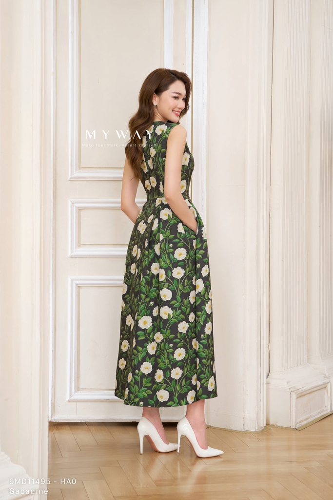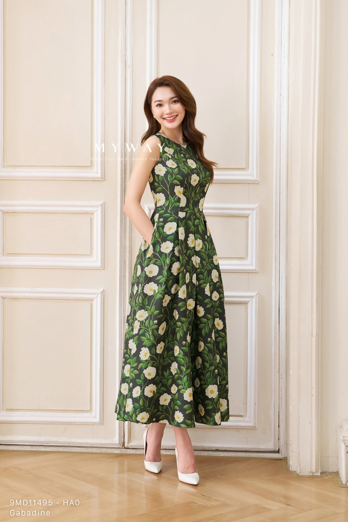 Đầm xòe dáng trên ôm dưới xòe, cổ tròn thanh lịch, dài qua bắp chân, vừa tôn dáng vừa mang lại cảm giác duyên dáng, nữ tính. Thiết kế có túi tiện lợi, lớp lót tinh tế, mang đến sự chỉn chu và thoải mái khi mặc.Sản phẩm được chế tác từ chất liệu Gabadine nhập khẩu cao cấp, xử lý kỹ lưỡng để giữ phom dáng chuẩn chỉnh, bền đẹp và thoáng mát.Điểm nhấn nổi bật nằm ở họa tiết hoa độc đáo: nền xanh phối hoa be nhẹ nhàng, hoặc nền đen kết hợp hoa vàng rực rỡ – cả hai đều sắc nét, sang trọng, giúp người mặc trở nên nổi bật trong mọi không gian.Chiếc đầm mang đến vẻ lịch sự, phong cách hiện đại và khả năng phối đồ đa dạng, phù hợp từ công sở đến những buổi dạo phố hay tiệc nhẹ.