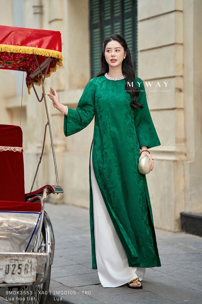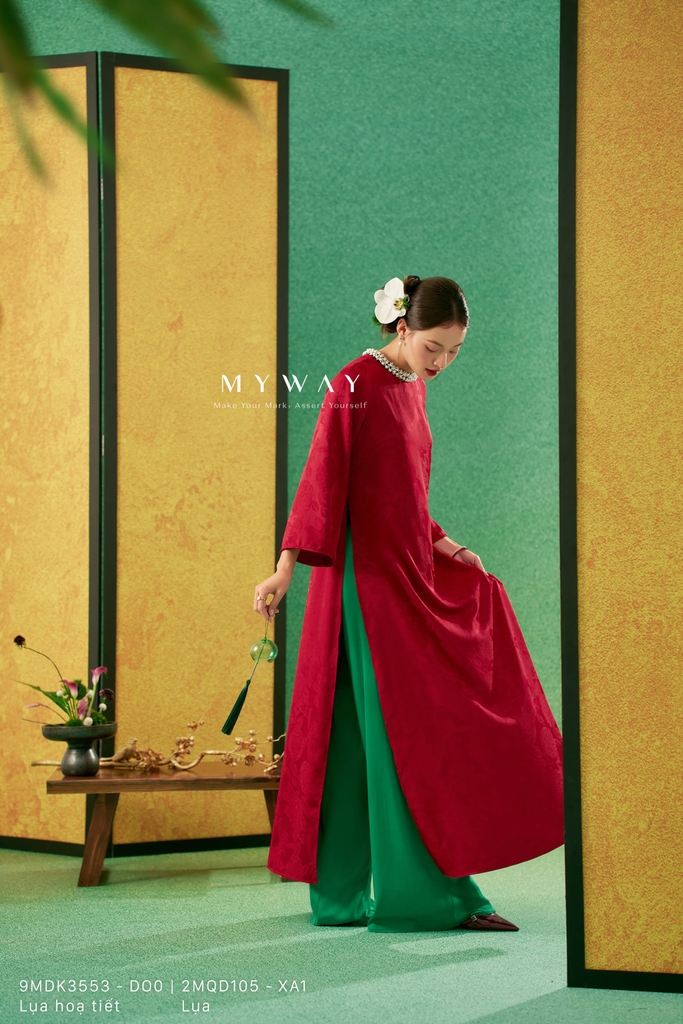 Nằm trong BST DIÊN VĨ, thuộc dòng sản phẩm Frenchy thanh lịch, nhẹ nhàng cùng Quý cô xuống phố du xuân ấn tượng, áo dài My Way kết hợp truyền thống và hiện đại để nàng có vẻ ngoài duyên dáng, thanh thoát.