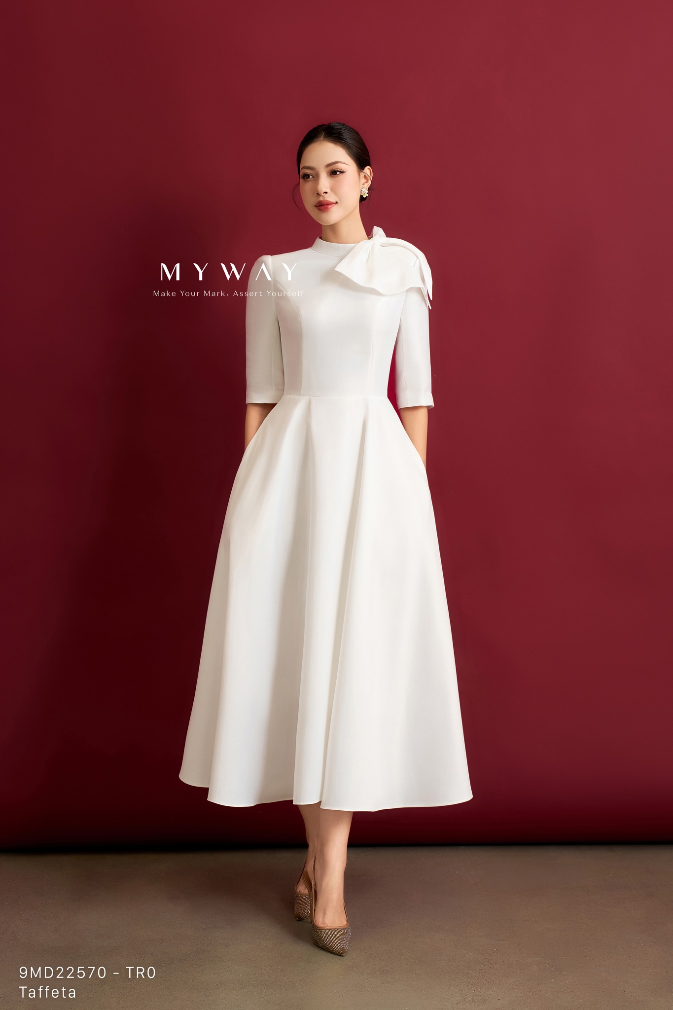 Các mẫu đầm xòe thanh lịch được thiết kế với cấu trúc ôm nhẹ phần thân trên, nhấn vào vòng eo một cách tinh tế và xòe mềm mại phía dưới, tạo hiệu ứng cân đối cho tổng thể vóc dáng. Sự tính toán kỹ lưỡng về chiều dài, độ rộng tà váy và tỷ lệ thân trên – thân dưới giúp người mặc cảm nhận rõ sự gọn gàng và thanh thoát.