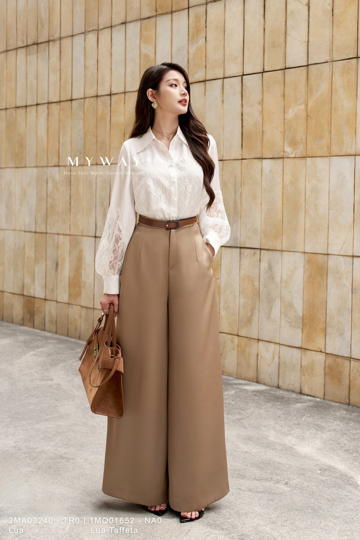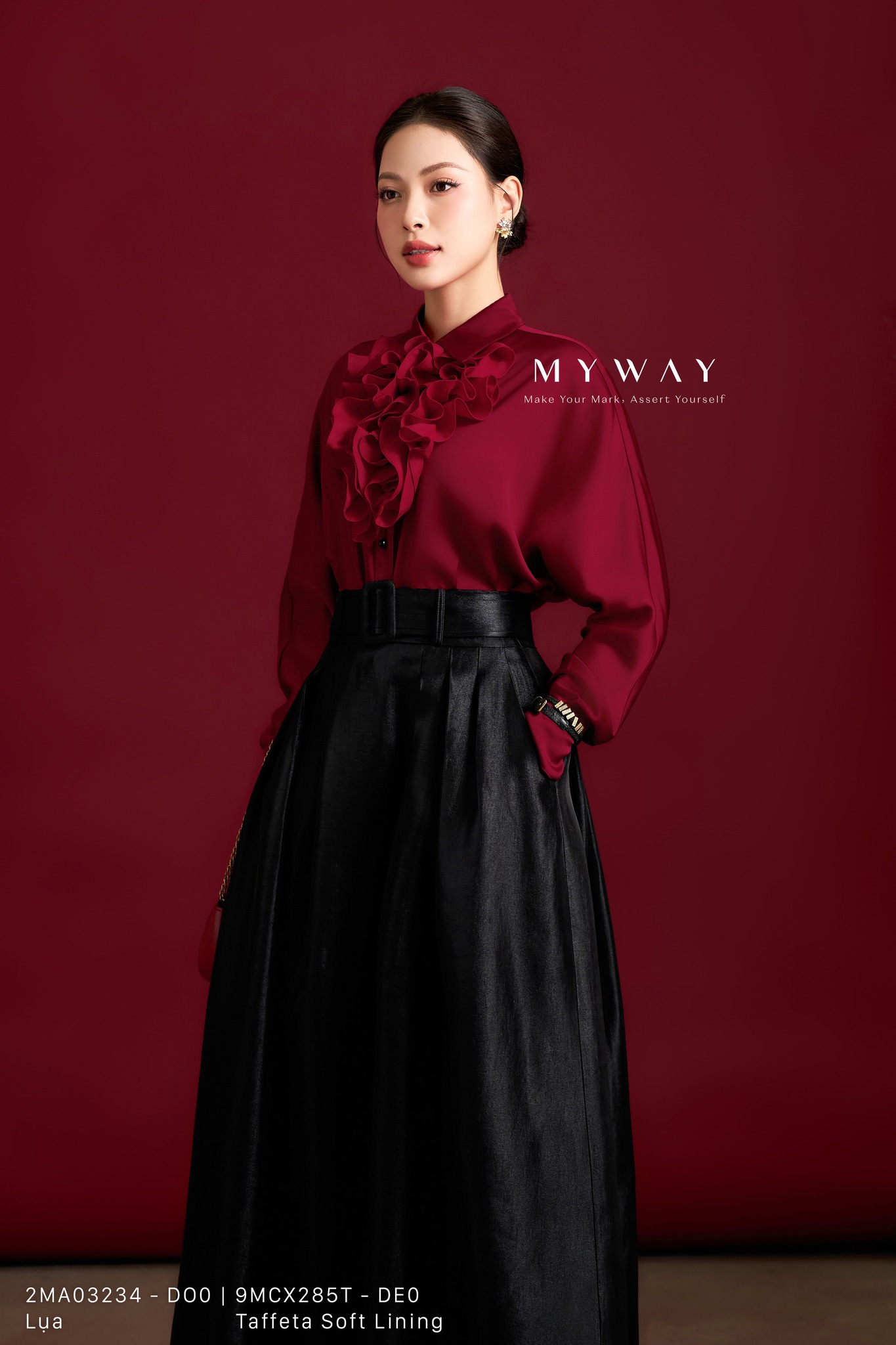 Sơ mi đính hoa tinh tế là điểm chạm mềm mại trong tổng thể bộ sưu tập. Chi tiết đính kết được xử lý khéo léo, tạo điểm nhấn nữ tính nhưng không rườm rà, giữ được sự thanh lịch vốn là tinh thần chủ đạo của My Way.