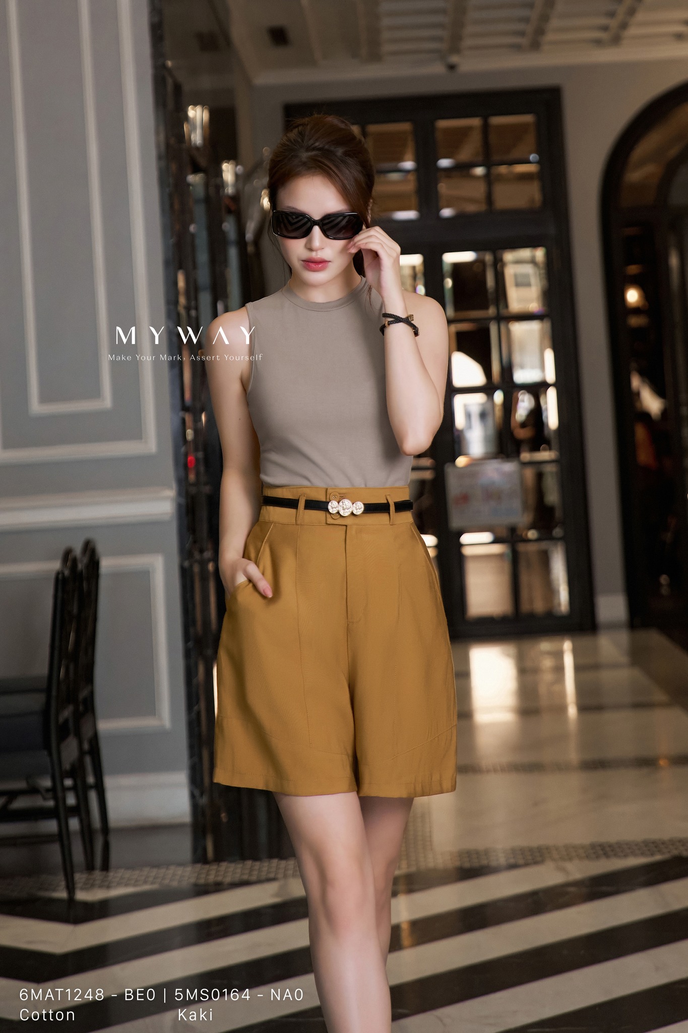 Với My Way, quần short không giới hạn trong những buổi dạo phố. Khi kết hợp cùng sơ mi thanh lịch, blouse mềm mại hay áo phông năng động, nàng sẽ có ngay vô vàn biến tấu – từ vẻ đẹp công sở nền nã, phong cách tối giản đời thường cho đến sự trẻ trung đầy phóng khoáng.