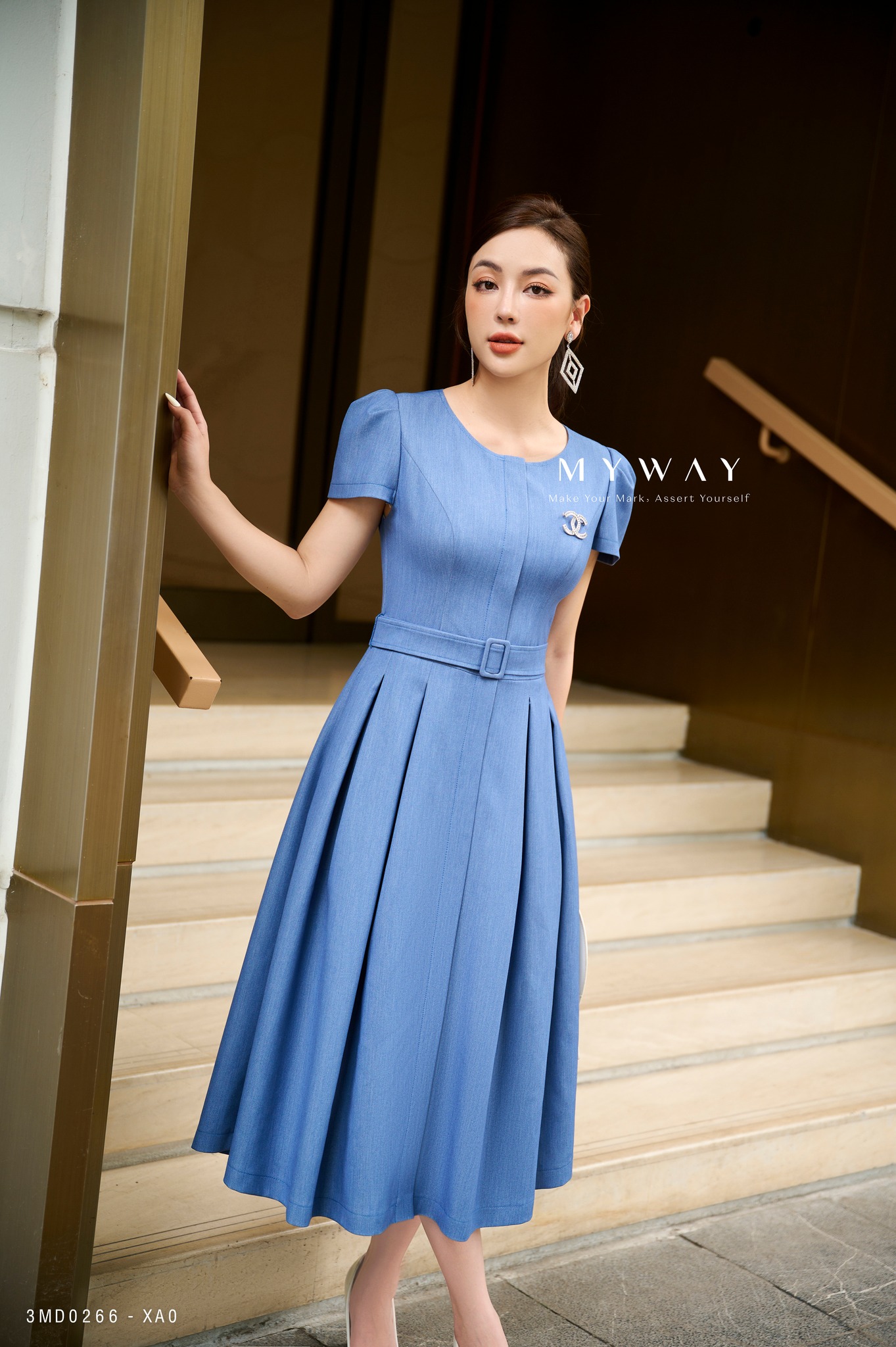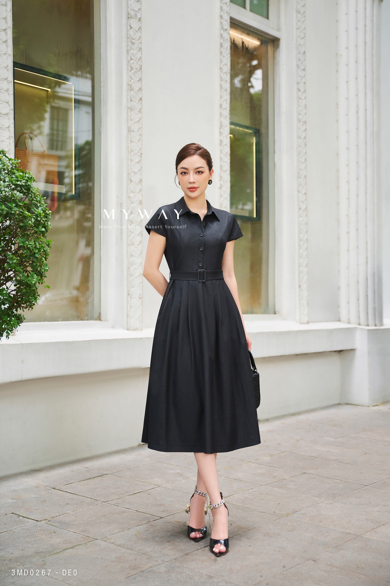 Lựa chọn outfits đi làm mang tiêu chí hoàn hảo cho ngày hè là mềm mại và thoáng mát nhưng vẫn đảm bảo sự sang trọng và thanh lịch. Trong chất liệu chambray mỏng nhẹ, quý cô My Way tạo ấn tượng trong mắt người đối diện với chiếc đầm cổ sơ mi hoàn hảo.