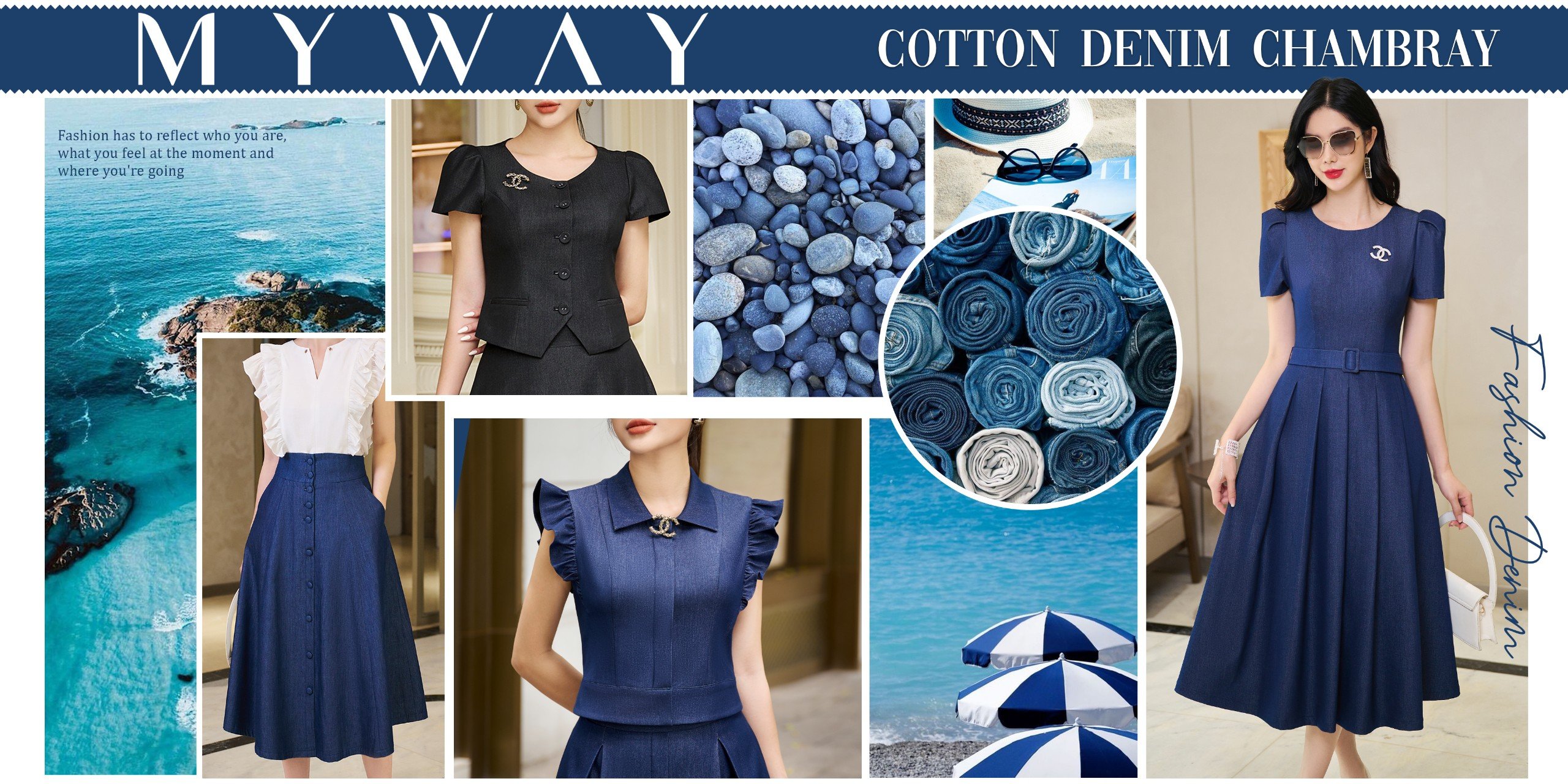 Vẫn là chất liệu yêu thích Cotton Denim Chambray đứng đầu xu hướng, thiết kế đầm My Way biến quý cô trở nên thanh lịch và ấn tượng trong mọi cuộc gặp gỡ.
