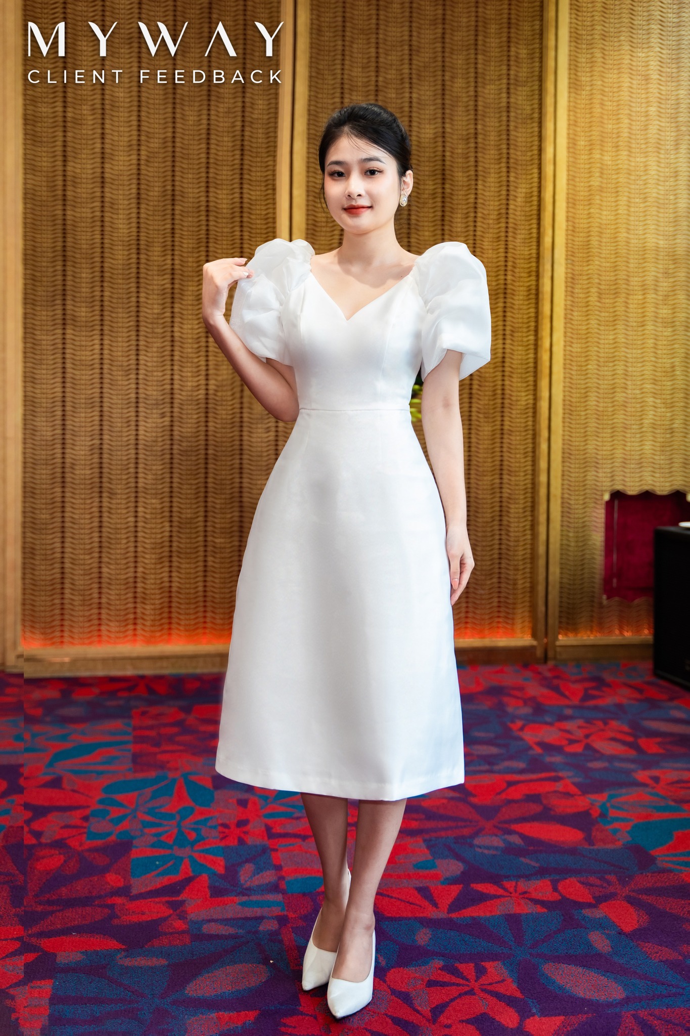 Trong mọi buổi tiệc, những thiết kế từ My Way luôn được các quý cô yêu thích và lựa chọn. Bởi mỗi môt sản phẩm khi mặc lên người chủ nhân đều phát huy tính riêng biệt của nó. Với thiết kế yêu kiều, che giấu khuyết điểm tốt với thiết kế tay bồng cùng đường may tinh tế và vô cùng trẻ trung sẽ mang lại cho quý cô vẻ ngoài hoản hảo nhất!