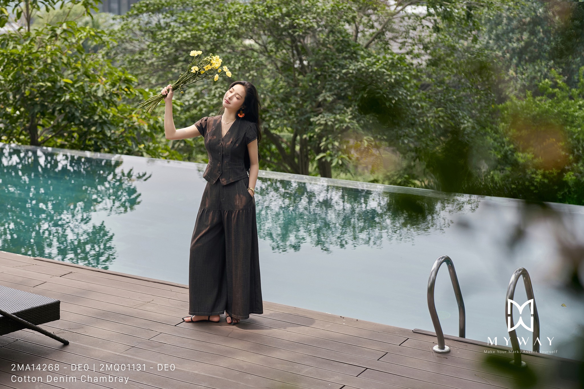Điều thú vị nằm ở cách bộ sưu tập cân bằng giữa hai thái cực tưởng chừng đối lập: nữ tính và phóng khoáng. Trong cùng một thiết kế, nàng có thể cảm nhận được sự dịu dàng qua từng nếp vải bay nhẹ, nhưng đồng thời vẫn thấy được sự tự tin, hiện đại qua tinh thần denim đặc trưng. Đây chính là vẻ đẹp của người phụ nữ ngày nay – không bị đóng khung trong bất kỳ khuôn mẫu nào, mà linh hoạt, đa chiều và luôn chuyển động.