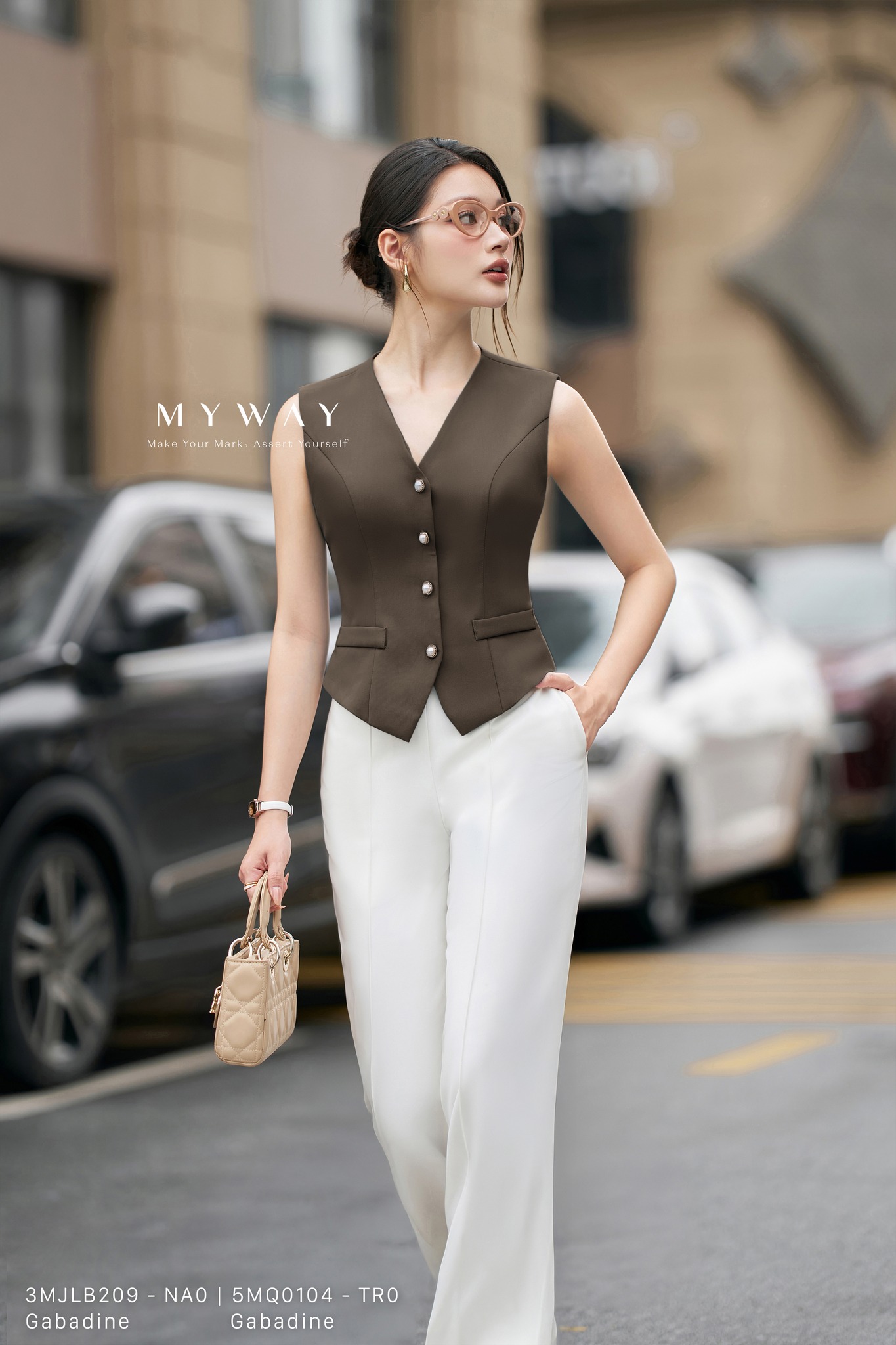 Không phô trương cũng chẳng cầu kỳ, chiếc gile khoác lên mình phom dáng gọn gàng, chiết eo mềm mại, tôn lên đường cong thanh thoát. Cùng bảng màu trung tính, dễ dàng hòa nhịp trong mọi bối cảnh – nơi công sở nghiêm cẩn, buổi họp quan trọng hay những cuộc hẹn ấm áp – nàng đều toát lên khí chất tự tin, tinh thần độc lập và phong thái thời thượng.