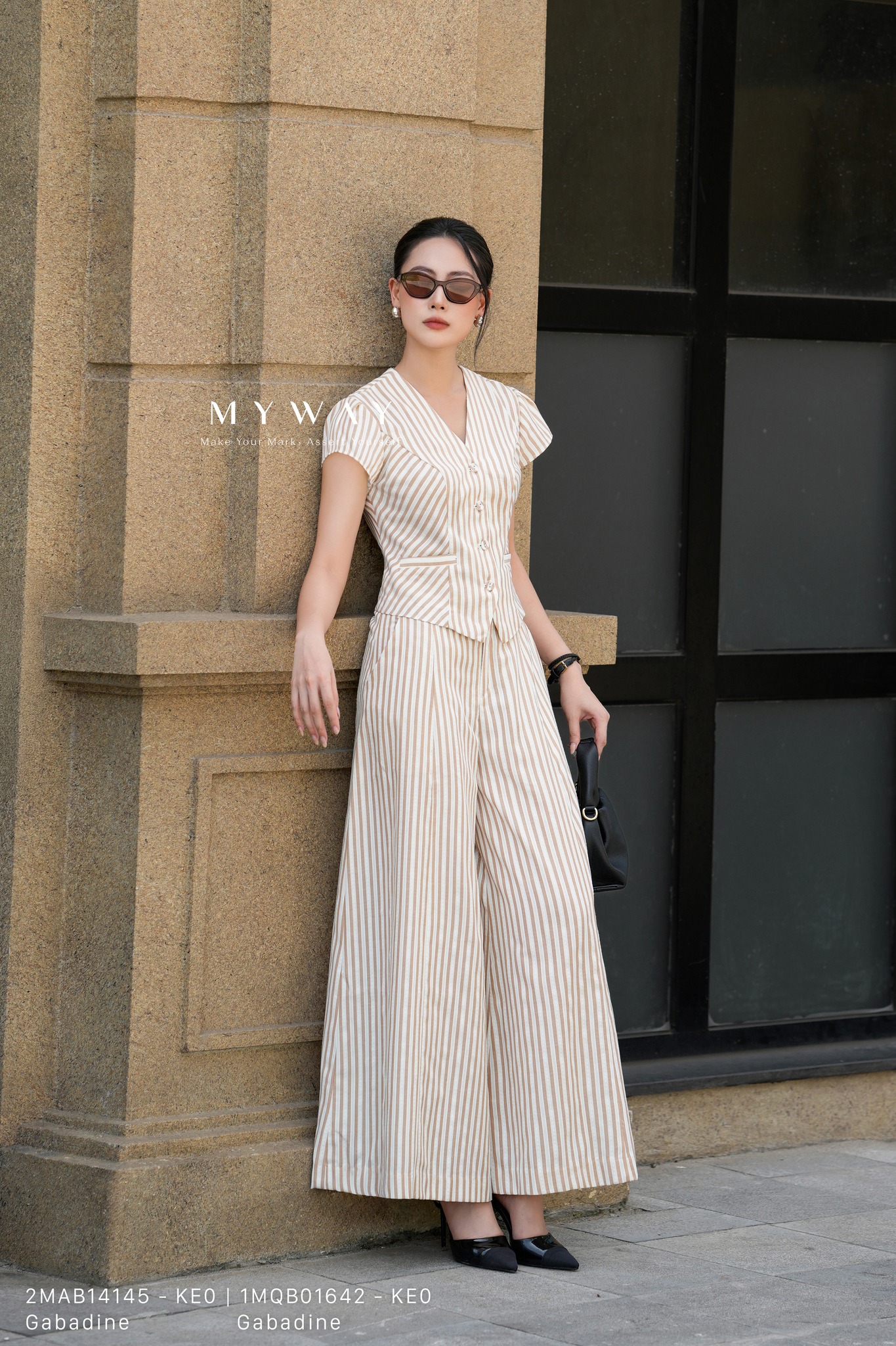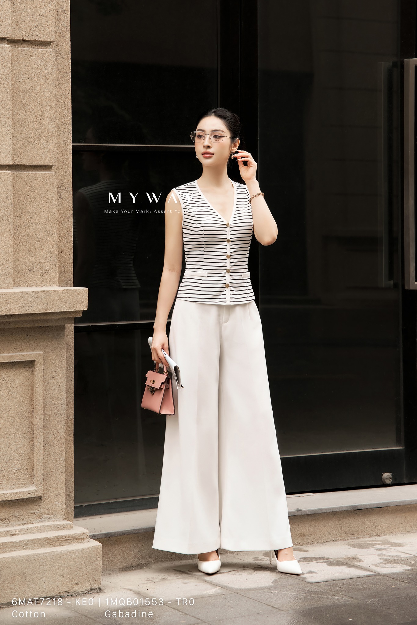 Những đường kẻ mềm mại như sợi nắng lướt qua buổi sớm, gile nhẹ nhàng mà sang trọng, ôm trọn dáng vẻ nữ tính đầy tinh tế.