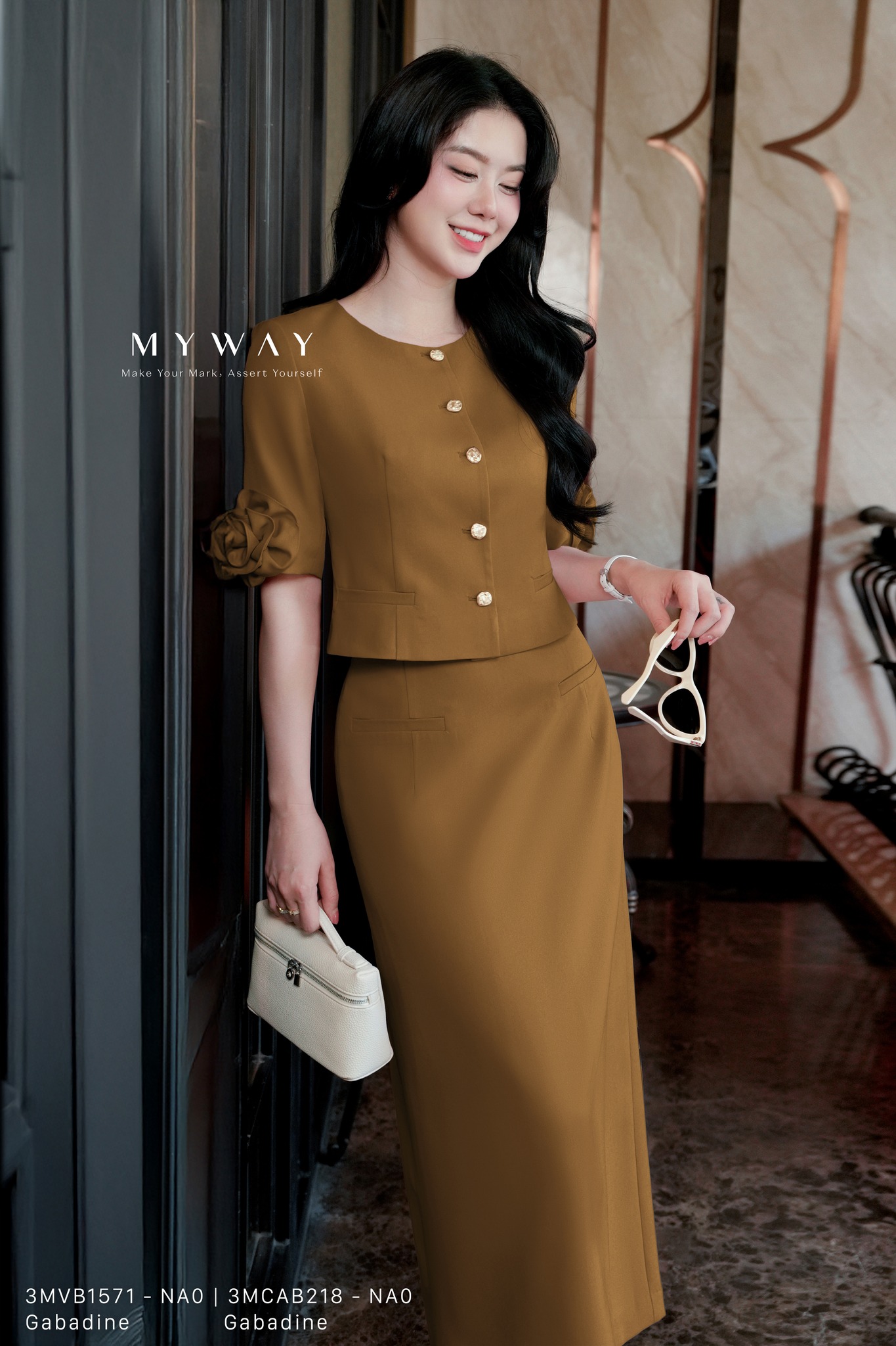 Từng gam màu, từng chất liệu đều được chọn lựa kỹ lưỡng để tôn lên phom dáng gọn gàng, chất liệu sang trọng và vẻ đẹp chuẩn mực của người phụ nữ My Way – dịu dàng nhưng không yếu mềm, tinh tế nhưng vẫn đầy tự chủ.