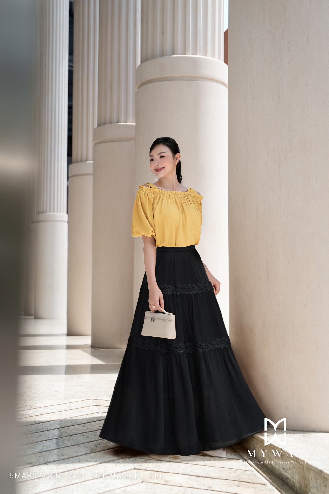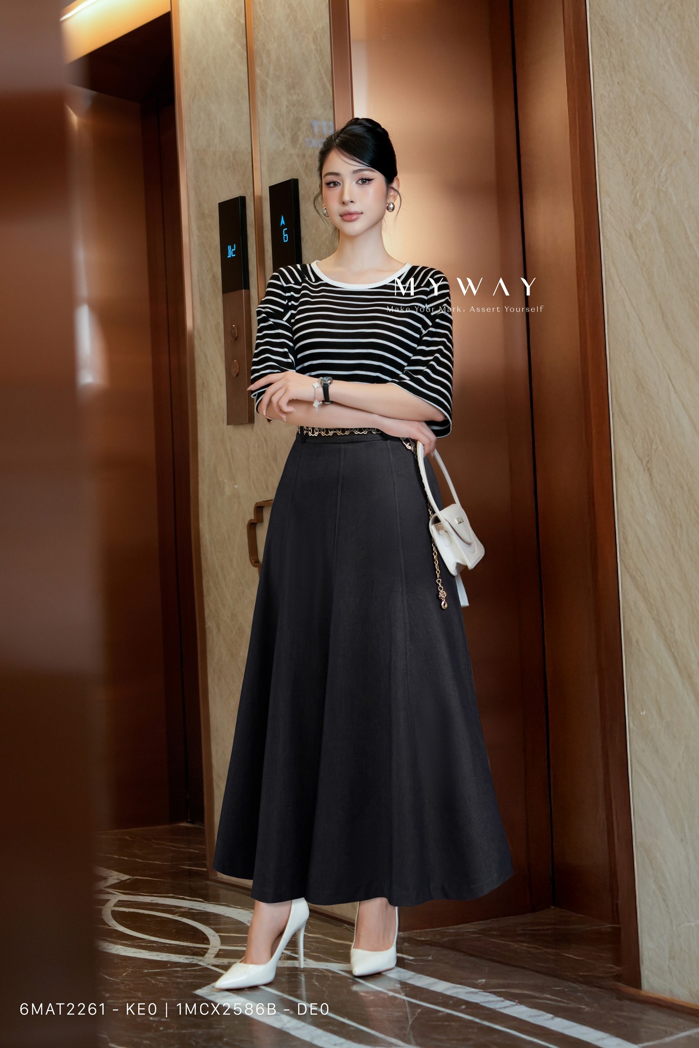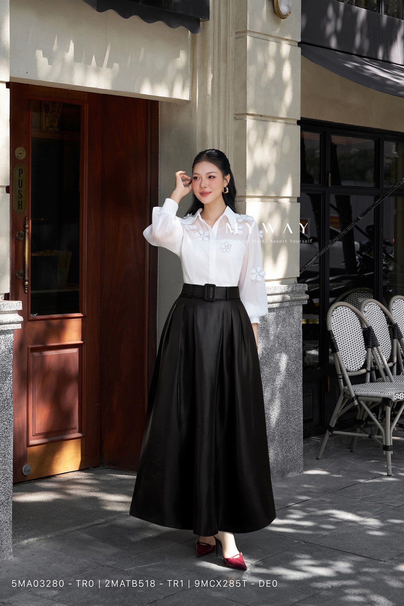 Bộ sưu tập chân váy xòe My Way hướng đến tinh thần “less is more” – giản đơn nhưng sang trọng, thanh thoát mà đầy cuốn hút. Không cần điểm xuyết quá nhiều chi tiết, chỉ với chất liệu cao cấp và đường cắt chuẩn xác, váy đã đủ để khắc họa trọn vẹn vẻ đẹp hiện đại của người phụ nữ.