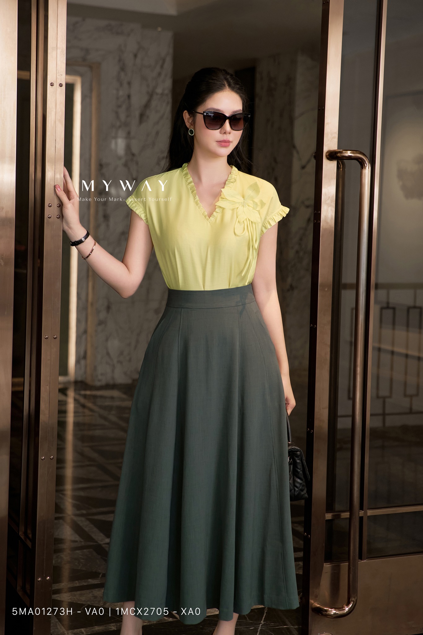 Tông vàng ánh lên sự ấm áp, rực rỡ như nắng mai. Mỗi bước chân, tà váy khẽ lay động, tỏa sáng đầy sức sống và niềm tin. Đây là lựa chọn của những quý cô biết cách biến mỗi ngày thường thành một ngày đặc biệt, bởi họ luôn tự tin tỏa sáng theo cách của riêng mình.