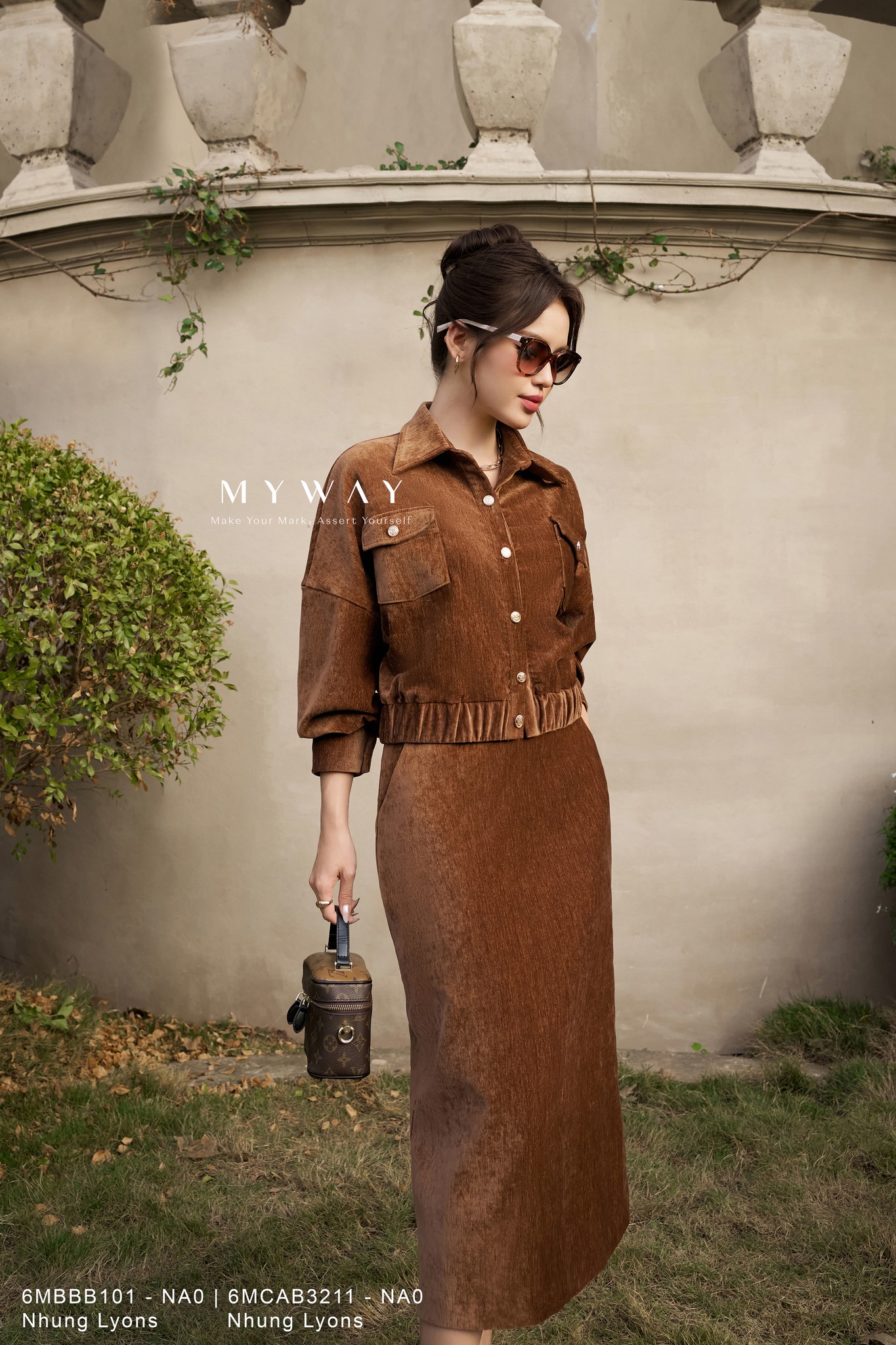 Chiếc áo nhung Plush với bề mặt ánh nhẹ tạo hiệu ứng bắt sáng tinh tế, hòa quyện cùng chân váy da Simili mềm mượt – một sự kết hợp đối lập đầy chủ ý. My Way khéo léo biến nhung không còn là chất liệu “cổ điển”, mà trở thành biểu tượng của nét đẹp hiện đại, cá tính và đầy quyền lực.